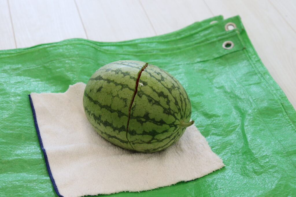 そのすいかを使って、ひだまり組(3歳児)・おおぞら組(4歳児)・いなほ組(5歳児)で