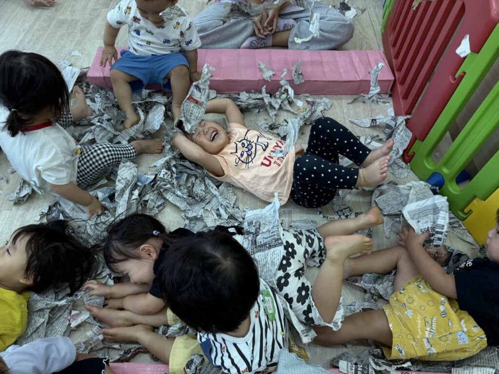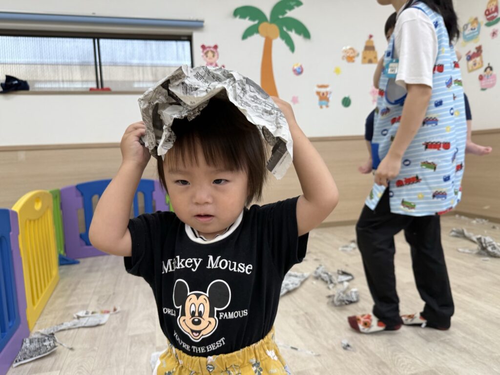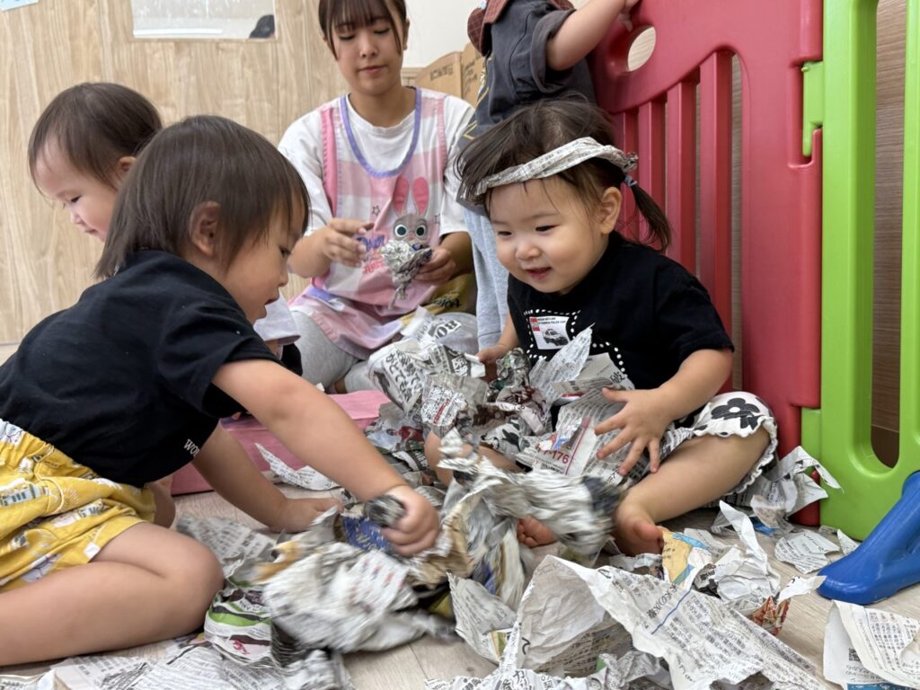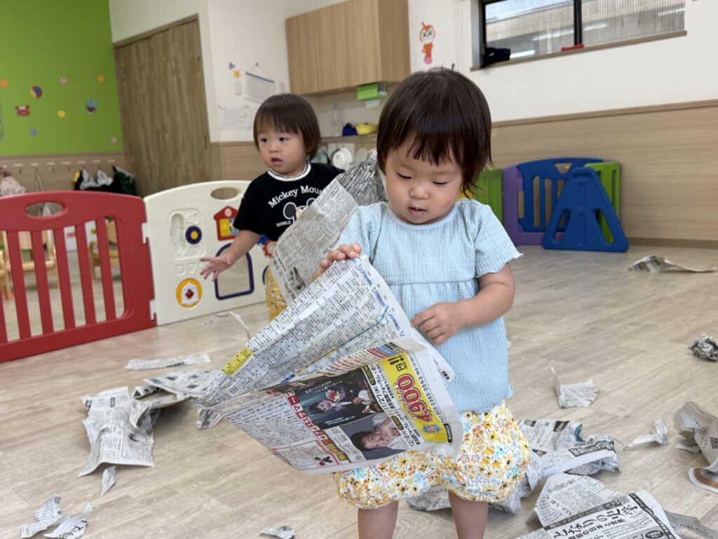 この日は新聞紙遊びをしている1歳児わかば組のお部屋にお邪魔してきました!
