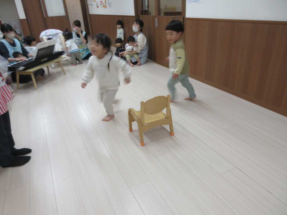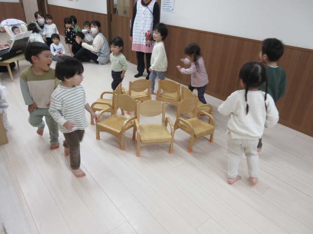 最初に先生からいすとりゲームのお約束を聞いて、よーいスタート!!