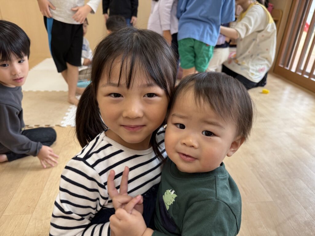 今日はおおぞら組(4歳児クラス)とつぼみ組(0歳児クラス)で触れ合い遊びを行った様子をお届けします🎵