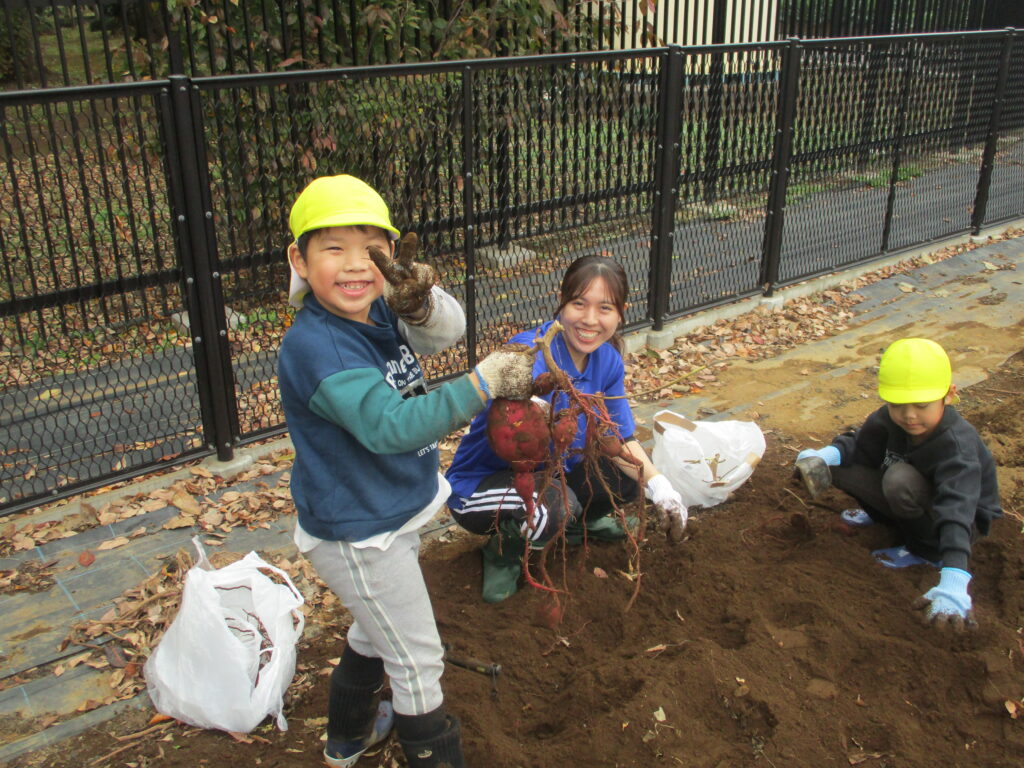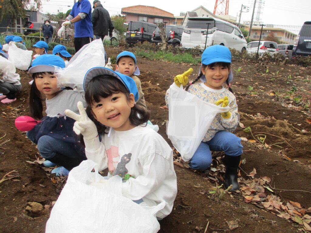 「早く食べたいね!」「焼いたらおいしいよね!」とさつまいもの味に期待大な子どもたちでした♪