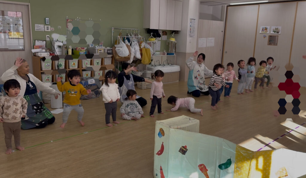 0歳児つぼみ組では朝の会や帰りの会でお歌を楽しんでいます🎶