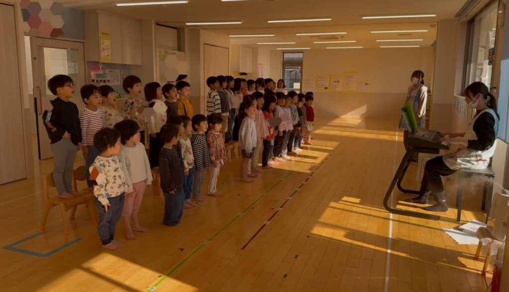 幼児クラスは3歳児、4歳児、5歳児合同で合唱も行います!