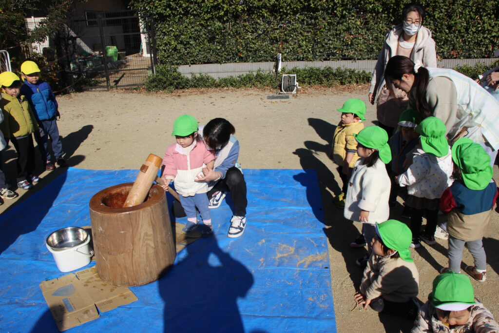 そんななかみずほ保育園大宮天沼では子どもたちとお餅つきを行いました。