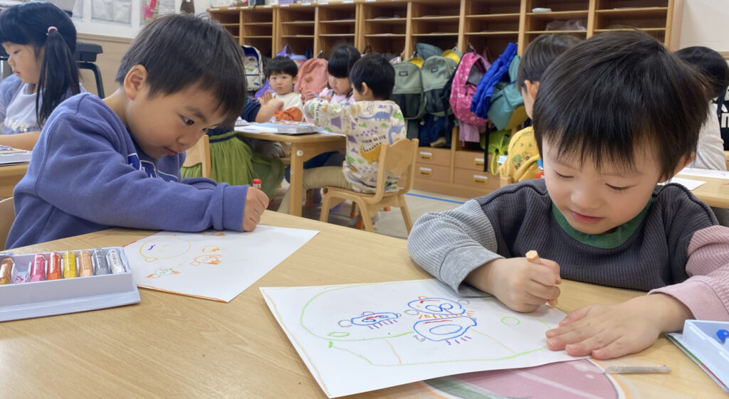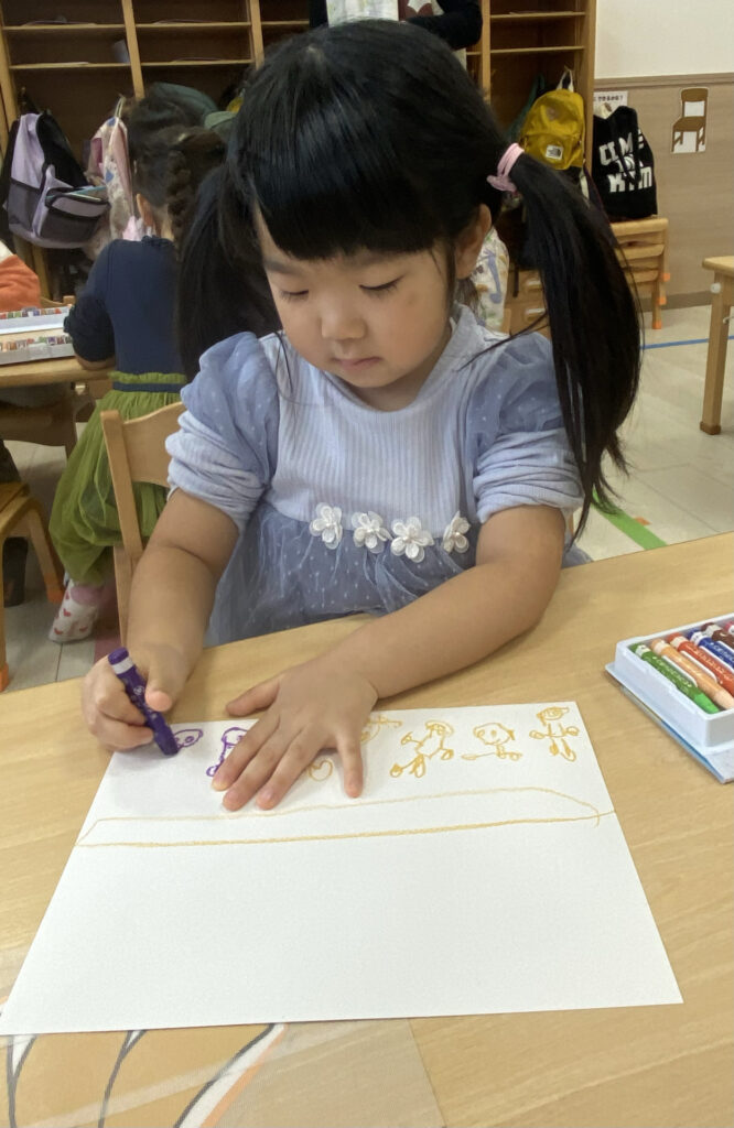 今日はひだまり組さんが、発表会の思い出を絵に描いていた様子をお届けします♪
