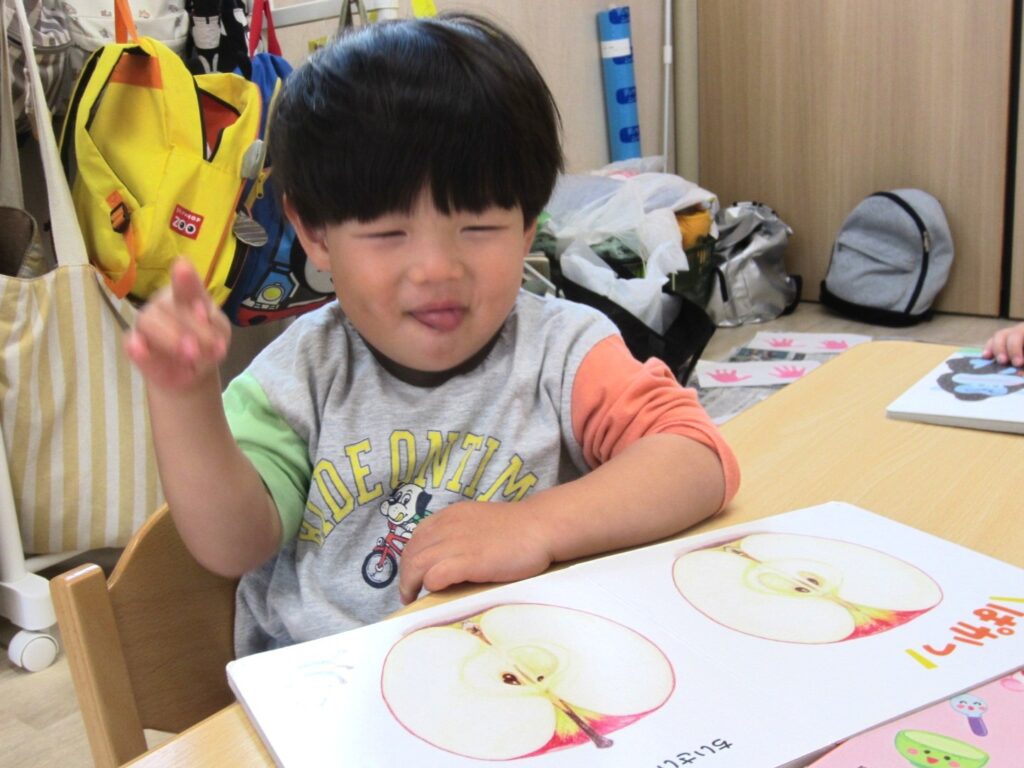 「ピンポ~ン♪」と絵本の絵に合わせてお話しています😊