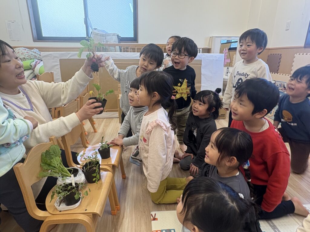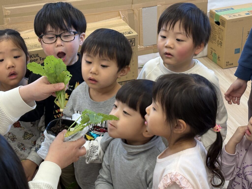 七草に興味深々なひだまり組さん😲