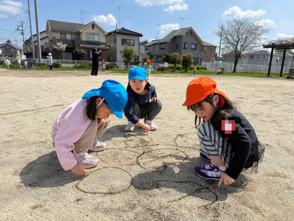 春のあたたかい風を感じながら、「いっしょにえをかこ~!」や「おにごっこしよう!」と