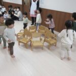 2025.11.07いすとりゲーム🌟(浦和北口・東仲町)こんにちは!さいたま市浦和区にあります、みずほ保育園浦和北口・東仲町です♪ 今回は、子どもたちが大好きなリズムあそびのワンコーナー『いすとりゲーム』を紹介します。 最初に先生からいすとり